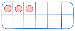 When learning to count you will sometimes see three on something called a ten frame. In this representation we have a grid of ten boxes and use a three dots to represent the number three.